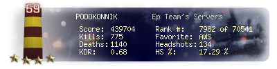 | Kill-streak | 10 | Death-streak | 20 | Team Kills | 0 |