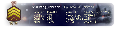 | Kill-streak | 6 | Death-streak | 8 | Team Kills | 0 |