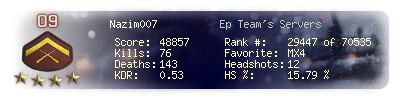 | Kill-streak | 4 | Death-streak | 13 | Team Kills | 0 |