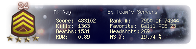 | Kills | 1363 | Deaths | 1531 | Kill / Death | 0.89 |