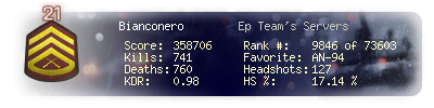 | Kill-streak | 9 | Death-streak | 9 | Team Kills | 1 |