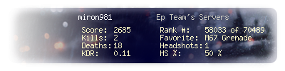 | Headshots | 0 | Suicides | 0 | Headshot / Kill | 0 % |