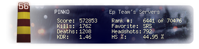 | Headshots | 792 | Suicides | 15 | Headshot / Kill | 44.95 % |