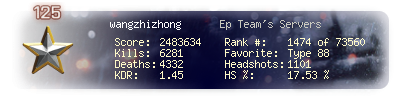 | Kills | 6285 | Deaths | 4334 | Kill / Death | 1.45 |