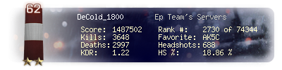 | Kills | 3648 | Deaths | 2997 | Kill / Death | 1.22 |