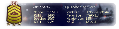 | Headshots | 164 | Suicides | 48 | Headshot / Kill | 12.68 % |