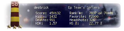 | Kills | 1432 | Deaths | 911 | Kill / Death | 1.57 |
