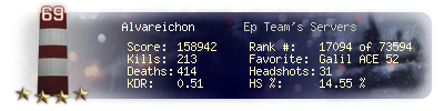 | Kills | 213 | Deaths | 414 | Kill / Death | 0.51 |