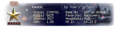 | Kills | 6625 | Deaths | 3527 | Kill / Death | 1.88 |