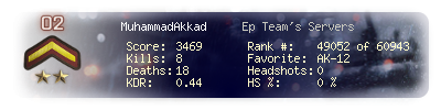 | Headshots | 0 | Suicides | 0 | Headshot / Kill | 0 % |