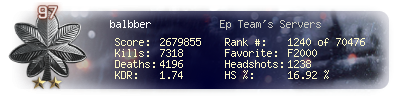 | Headshots | 680 | Suicides | 220 | Headshot / Kill | 13.6 % |