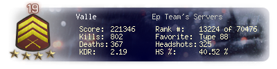 | Kill-streak | 22 | Death-streak | 9 | Team Kills | 0 |