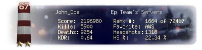 | Headshots | 1318 | Suicides | 37 | Headshot / Kill | 22.34 % |