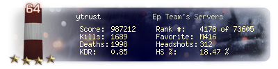 | Kills | 1689 | Deaths | 1998 | Kill / Death | 0.85 |