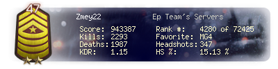 | Headshots | 181 | Suicides | 8 | Headshot / Kill | 14.93 % |