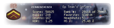 | Headshots | 53 | Suicides | 3 | Headshot / Kill | 25.48 % |