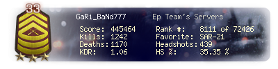 | Headshots | 439 | Suicides | 8 | Headshot / Kill | 35.35 % |