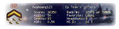 | Kill-streak | 5 | Death-streak | 9 | Team Kills | 0 |