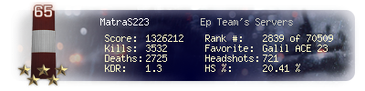 | Kill-streak | 13 | Death-streak | 13 | Team Kills | 2 |