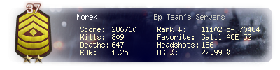 | Kill-streak | 7 | Death-streak | 8 | Team Kills | 0 |