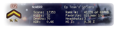 | Kill-streak | 2 | Death-streak | 9 | Team Kills | 0 |