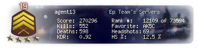 | Kill-streak | 8 | Death-streak | 13 | Team Kills | 0 |