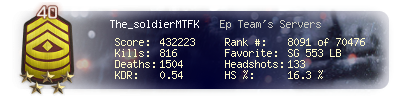 | Kill-streak | 6 | Death-streak | 17 | Team Kills | 1 |