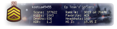 | Kill-streak | 16 | Death-streak | 8 | Team Kills | 0 |