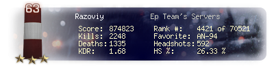 | Kill-streak | 34 | Death-streak | 8 | Team Kills | 1 |