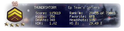 | Kill-streak | 6 | Death-streak | 14 | Team Kills | 0 |