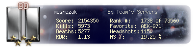 | Kills | 5973 | Deaths | 5277 | Kill / Death | 1.13 |