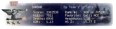 | Kills | 7811 | Deaths | 6908 | Kill / Death | 1.13 |
