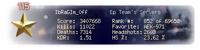 | Kills | 11022 | Deaths | 7314 | Kill / Death | 1.51 |