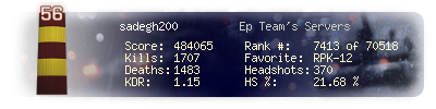 | Headshots | 51 | Suicides | 2 | Headshot / Kill | 26.29 % |