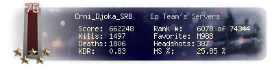 | Headshots | 387 | Suicides | 21 | Headshot / Kill | 25.85 % |