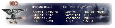 | Kills | 4642 | Deaths | 705 | Kill / Death | 6.58 |