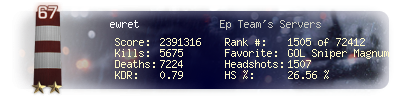 | Headshots | 1507 | Suicides | 121 | Headshot / Kill | 26.56 % |