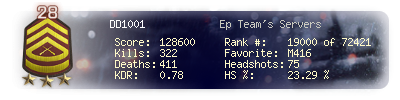| Kill-streak | 4 | Death-streak | 8 | Team Kills | 0 |