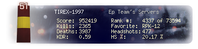 | Kill-streak | 4 | Death-streak | 17 | Team Kills | 1 |