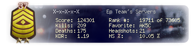 | Headshots | 21 | Suicides | 5 | Headshot / Kill | 10.05 % |