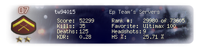 | Kill-streak | 3 | Death-streak | 27 | Team Kills | 0 |