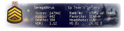 | Headshots | 115 | Suicides | 1 | Headshot / Kill | 26.02 % |