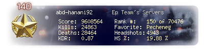 | Headshots | 1572 | Suicides | 152 | Headshot / Kill | 18.67 % |