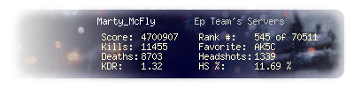 | Headshots | 1339 | Suicides | 47 | Headshot / Kill | 11.69 % |