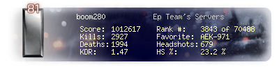 | Headshots | 268 | Suicides | 28 | Headshot / Kill | 22.08 % |