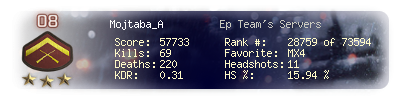 | Kill-streak | 4 | Death-streak | 19 | Team Kills | 0 |