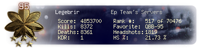 | Kills | 8372 | Deaths | 8361 | Kill / Death | 1 |