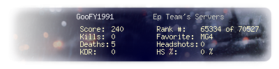 | Headshots | 0 | Suicides | 0 | Headshot / Kill | 0 % |