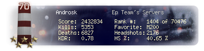 | Headshots | 2176 | Suicides | 31 | Headshot / Kill | 40.65 % |