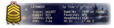 | Headshots | 163 | Suicides | 24 | Headshot / Kill | 17.66 % |